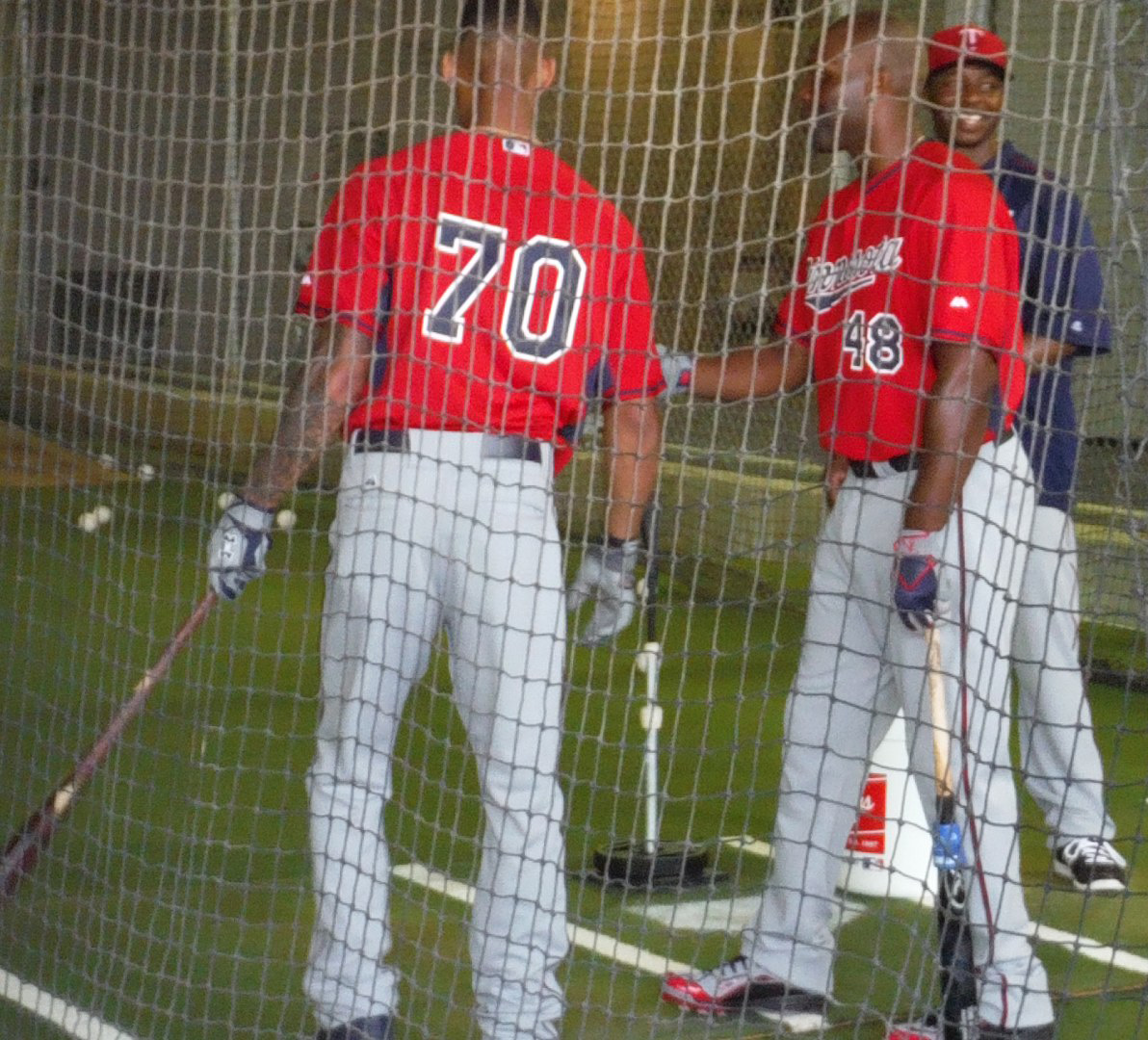 Well if there was any question why Torii Hunter was brought in, it showed on the first day of Spring Training full squad workouts when he was giving pointers to Byron Buxton and Aaron Hicks in the batting cages. Hunter was hands on and even more interactive with Buxton than coach Butch Davis. The following is video of Buxton receiving pointers from Hunter followed up by a cage session with Torii Hunter.. I'm not a professional, a kind-of adopted Twins fan, diehard Cubs fan but a just a baseball lover all around. Enjoy, follow me on twitter @tturbo420
