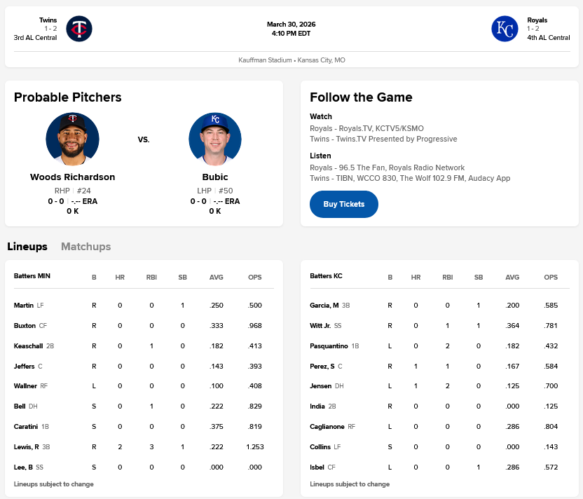 Soft-tossing lefty, Cameron is really good against LHB, but his cutter against righties is the pitch the Twins will need to hit, and hopefully he can hang a slider every once in a while. His curveball and changeup are his put-away pitches. Cameron's curveball had a 9-run value last year with an almost 30 Whiff%. Let's go Twins!!!