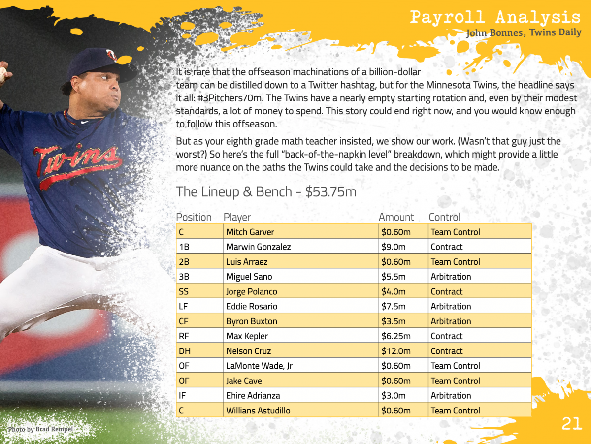 This comprehensive overview of the 2019-20 offseason landscape is narrated through a Twins-centric lens, with in-depth coverage of every key storyline and possibility. Inside, you'll find: