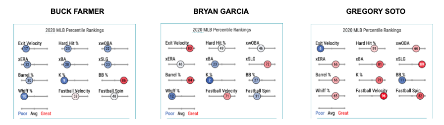 Farmer’s 2020 savant profile doesn’t quite do him justice as he’s more capable of missing bats than his 10th percentile ranking would indicate, while also being more susceptible to walks. His fastball was about two miles-per-hour slower than in 2019 and he pounded the zone a bit more in 2020, which when put together may be why hitters hit him hard last season.