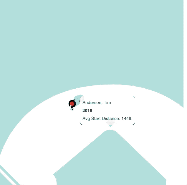 Like Rosario, his walk rate and defense are both pretty poor which will limit his ceiling as a star...especially if he sees that regression on the offensive side. Specifically, he struggles with balls in the hole between short and third where he has an estimated success rate of 69-percent, according to Savant, which is considerably less than any other location. What I found odd is the changes in his average starting position throughout his career.