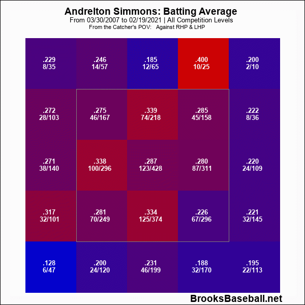 At 31-years old Simmons is the elder statesman of the group and the departure of Lindor makes him the best all-around shortstop in the division. It’s been well documented that defense is Simmons’ calling card (check here, here, here, and/or here), so let's take a look at what he brings offensively.