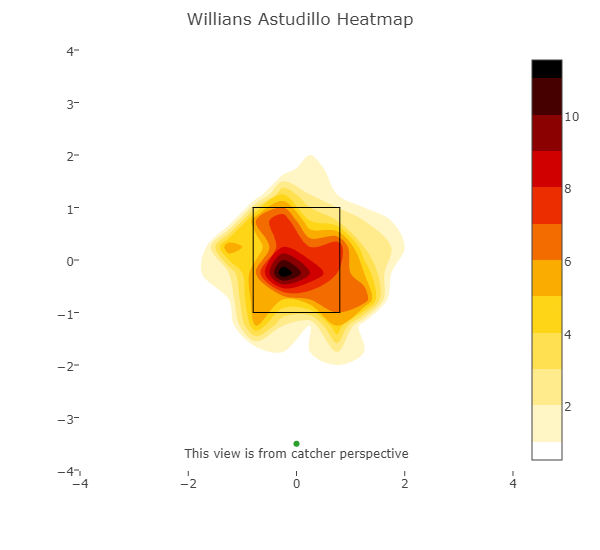 Problematic for Astudillo in his batted-ball profile was that the ability to make contact looked the part of a downfall. Instead of adjusting to big league pitching he simply ate whatever was presented to him directly from the palm of their hand. This season Astudillo has chased 45.8% of the time, up 3% from 2018, but his contact rate remains identical at 91.7%. He’s not whiffing much more (5.2%) and he still owns a miniscule 3.5% strikeout rate. All those inputs are the same, but it’s the output that has changed.