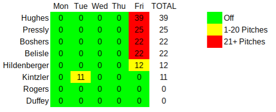 Here’s a quick look at the number of pitches thrown by the bullpen over the past five days: