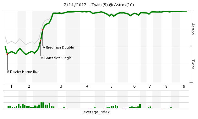Dozier had an excellent game, going 2-for-5 with four RBI, but he was one of very few bright spots for the Twins. Zack Granite got his first MLB hit, a double, and drew a walk.
