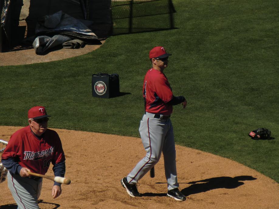 Kurt Suzuki could be seen in the main bullpen, working on blocking pitches in the dirt. Later, at Tom Kelly Field, Santana and Polanco were taking more ground balls off the bat of Paul Molitor. Jason Bartlett was taking grounders at second base. Joe Mauer took more ground balls at first base. He worked as though there was a runner on first base that he was holding on. He came off the bag to make plays. A couple of times, Tom Kelly came down the line and provided Mauer with additional pointers. With the new boardwalk overhead the whole conversation could be heard.