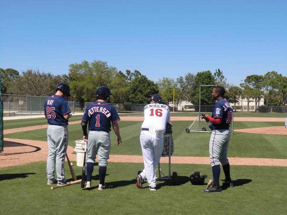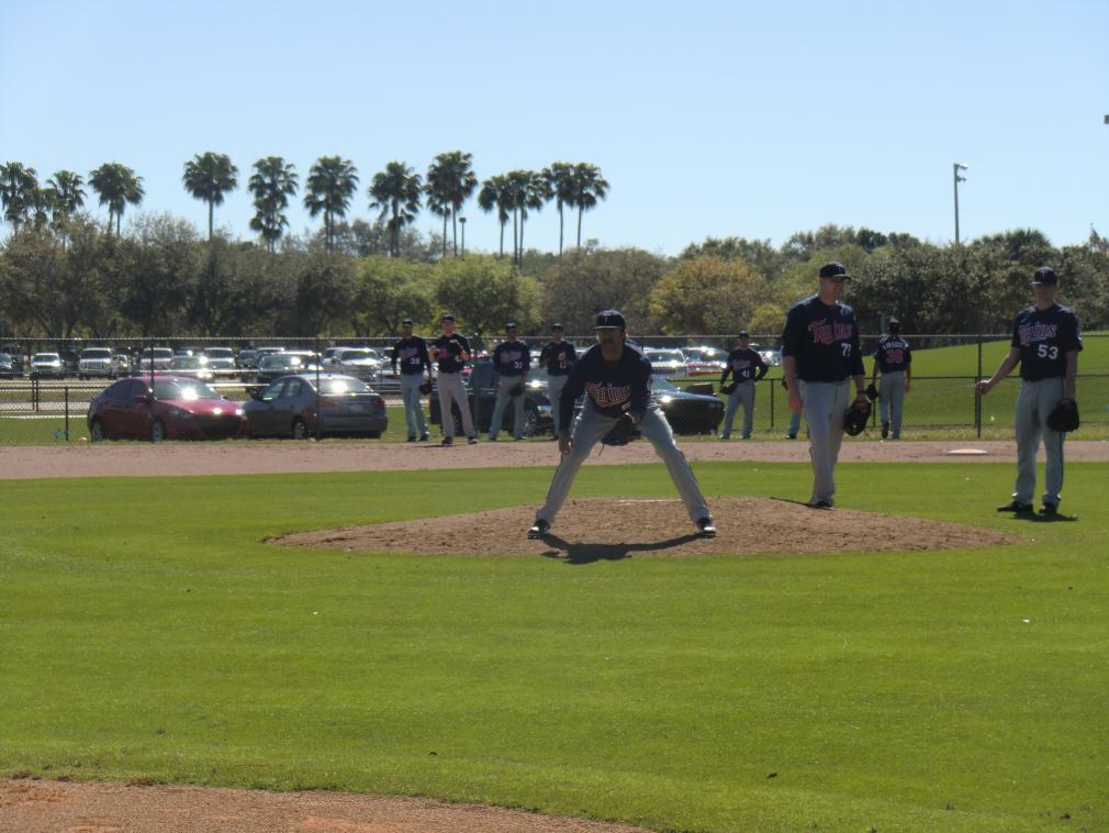 My flight arrived in Ft. Myers at about 5:00 p.m. local time on Friday night. Pick up the car. Find the lodging. Find something to eat. Crash. On Saturday morning, I actually was able to wake up after hitting snooze just twice. I was pretty proud of myself. Despite a GPS error that sent me the wrong direction, I was at Hammond Stadium by about 8:00 AM. The Twins bus to Dunedin had already taken off. No worries, I still put in six-and-a-half-hours of “Work.” Day One at Minnesota Twins spring training, for me, was a day to catch my bearings, get the lay of the land, and see a little bit of everything.[PRBREAK][/PRBREAK]