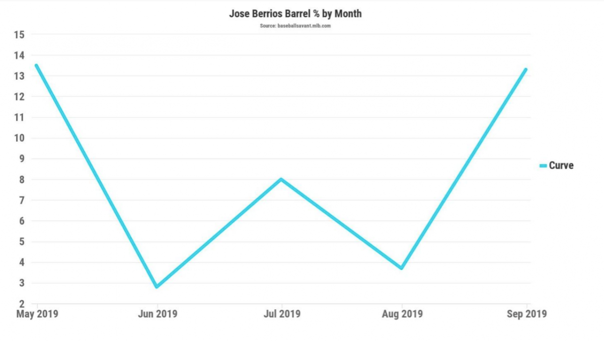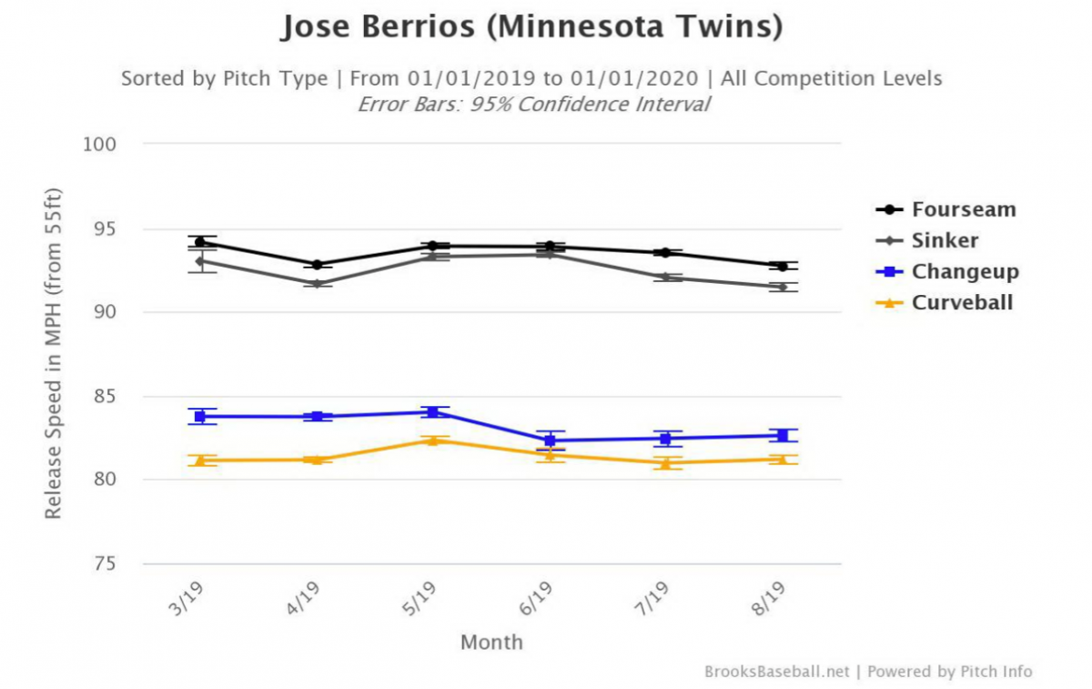 *Berrios' most recent start against Chicago is not included in the graphs.