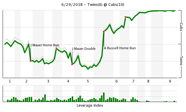 Garvin Alston went out, and I’m guessing he specifically told Jose “don’t give up a grand slam.” I think that’s how those visits usually go. Anyway, Berrios didn’t listen, and Addison Russell hit a grand slam on the very next pitch to put the Cubs up for good.