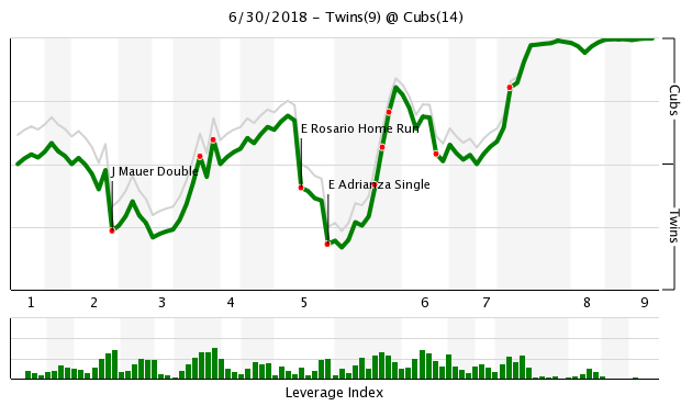 Addison Reed and Trevor Hildenberger combined to give up nine earned runs over a single inning of work. The Cubs had 20 hits and scored 14 runs, but they only had three extra-base hits, all of them doubles.