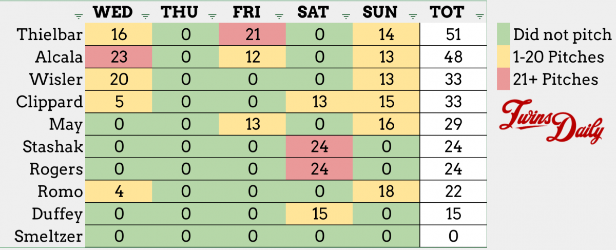 Romo really struggled to find the zone, throwing just seven of his 18 pitches for strikes. The Twins used seven pitchers today.