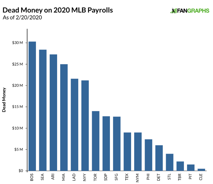For a smaller-market team like the Minnesota Twins (I know they’ve set a payroll record for 2020 and I’m grateful for that, but still…) whose window is wide open, having every penny available to spend on players who will help the team win now is very important. Plus, arbitration-eligible players like Byron Buxton and Jose Berrios are becoming more expensive by the year, potentially giving the Twins less financial flexibility to spend on free agents. Let’s take a look at the MLB leaders in dead money and see where Minnesota sits.