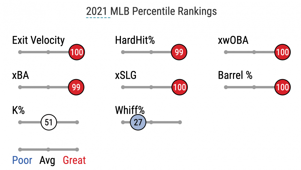 To put that exit velocity in perspective, it would've ranked second-highest out of all his batted balls in the entire 2020 season, and sixth in 2019.