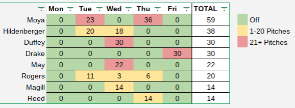 Here’s a quick look at the number of pitches thrown by the bullpen over the past five days: