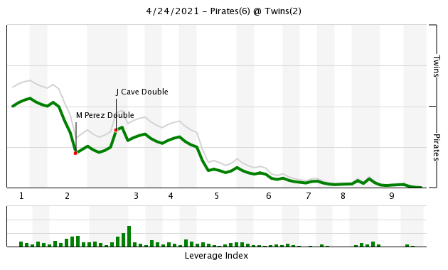 However, there is some evidence that the Twins got a little unlucky Saturday afternoon. They managed to hit nine balls — two less than the Pirates — that qualified as being hard hit by Baseball Savant, though only two — Cave’s doubles — were converted into hits. They also hit six balls that had an xBA of at least .500, including Astudillo’s single and one of Cave’s doubles; Kirilloff's fly out in the second inning had an xBA of .700 and Polanco's line out in the fourth an xBA of .870.