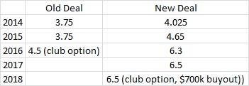 The deal gives Perkins a raise over what he would make the next couple of years and guarantees another $14M in future earnings. It costs him a chance to hit the free agent market in 2017, when he might have made almost twice as much as he will get paid over the last two years. Of course, he would have been be 34 at that point. The security was worth the big payday. That’s why Perkins approached the Twins about the deal.