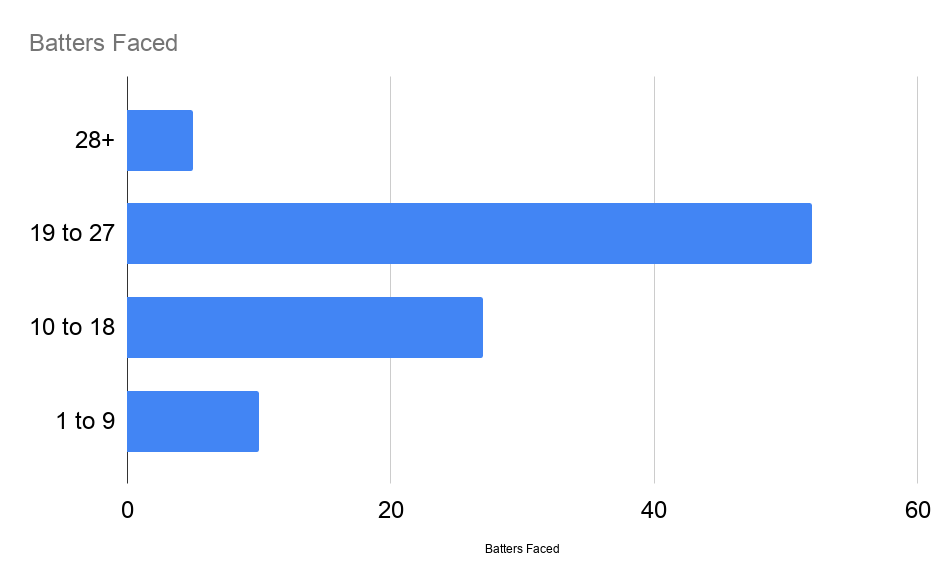 The mode of this data set was 19 batters faced. This was the exact number of batters Berríos faced in his outing versus Houston, while Maeda faced 20 men. Anyway, here’s a chart with the number of starts broken up by batters faced.