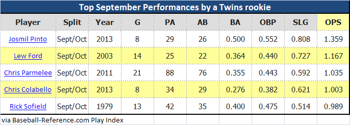 Much like Parmelee did in 2011, Pinto has grabbed the remaining Twins fans’ attention by hitting 13-for-23 (.565) with six extra base hits over his first seven games. Since 1980, only Jay Bruce (.577) had a better start to his career through seven games. Beyond just the numbers, Pinto’s offensive skill set has certainly been impressive. Prior to Tuesday’s game against the A’s, he had demonstrated solid strike zone judgment while making excellent contact. In fact, he had seen 49 fastballs and swung-and-missed at only one. In addition to that, the Venezuelan backstop had ripped line drives all over the field – proving that he was not just an eager rookie swinging from his heels.