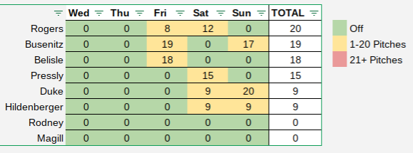 Here’s a quick look at the number of pitches thrown by the bullpen over the past five days: