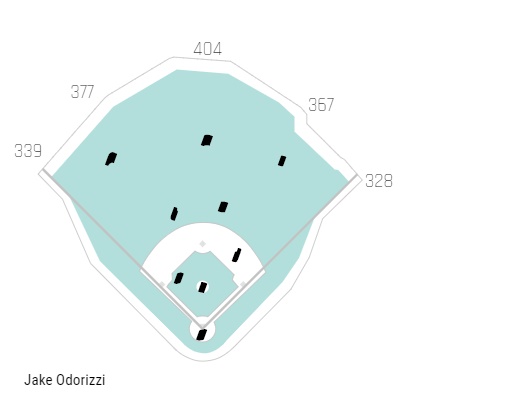 That leaves the outfielders. The right fielder would, in all likelihood, do well to play Arráez more or less straight-away. Like Mauer, Arráez tends to drill the ball when he does turn on it and elevate, so the only high-percentage play to that field is to play it straight and be ready to catch those line drives when they’re close enough.
