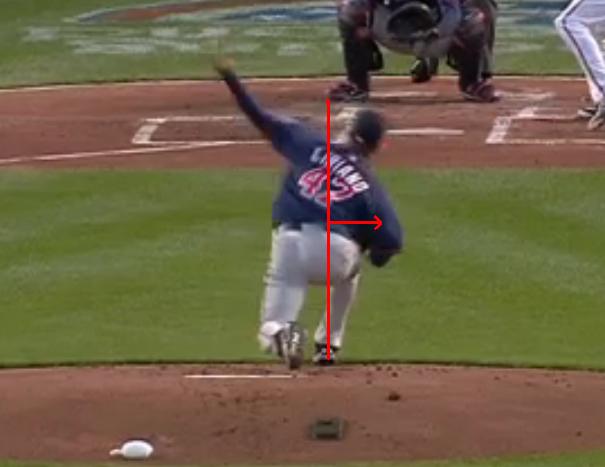 Because the center field cameras at Yankee Stadium are so off-kilter, it is nearly impossible to grab a shot that you can see where his balance point is driving towards but I would surmise that his “flying open” likely played a significant role in last night’s start as well.