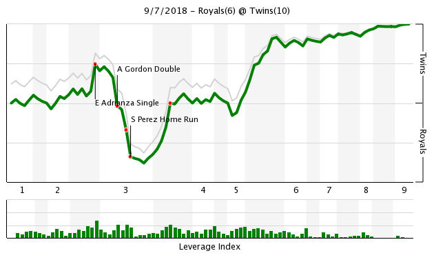 Gonsalves exited with the Twins trailing 3-2, but Alan Busenitz allowed two inherited runners to score plus one of his own, giving the Royals a six-run inning. Their lead did not last long.