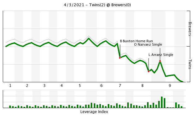 Top 3 WPA: Berríos .366, Buxton .168, Rogers .111