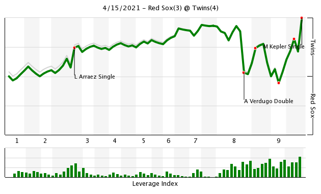 After Alexander Colomé navigated his way through the top of the ninth inning, the Minnesota Twins moved into the bottom of the ninth, where their offense has been completely non-existent over the first two weeks of the season. Today, though, the Twins offense produced in a clutch spot, with Arraez hitting a leadoff single, followed by a Polanco HBP, before Max Kepler walked off the Boston Red Sox for the third time in his young career with a single that scored Luis Arraez, avoiding a sweep and and ending the Twins’ five-game losing skid.