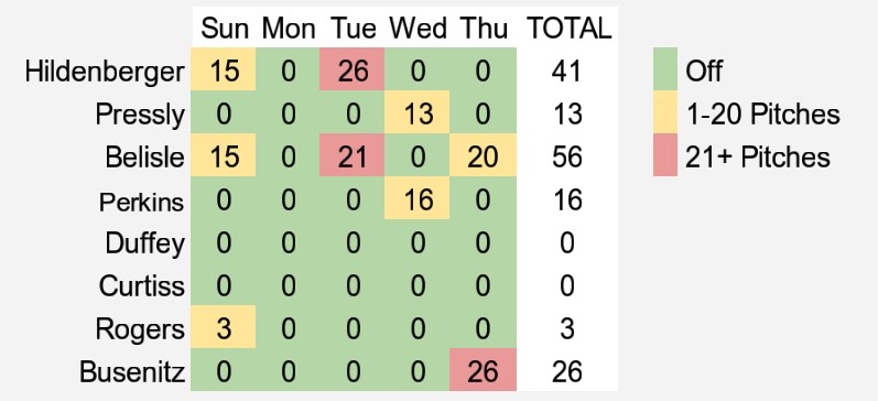 Here’s a quick look at the number of pitches thrown by the bullpen over the past five days:
