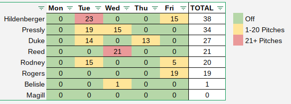 Here’s a quick look at the number of pitches thrown by the bullpen over the past five days: