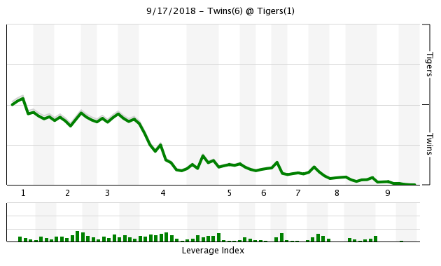 It was station-to-station baseball that inning. Robbie Grossman led things off with a double, which was followed by the Cave single. Logan Forsythe and Ehire Adrianza added a couple more singles, bringing Cave around to score, then Willians Astudillo hit into a run-scoring ground out. Joe Mauer capped it all off with an RBI single of his own.