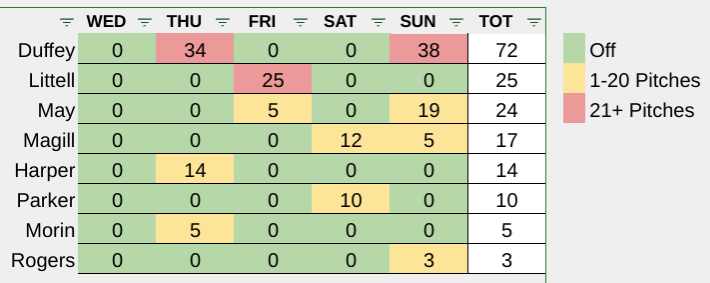 Here’s a quick look at the number of pitches thrown by the bullpen over the past five days: