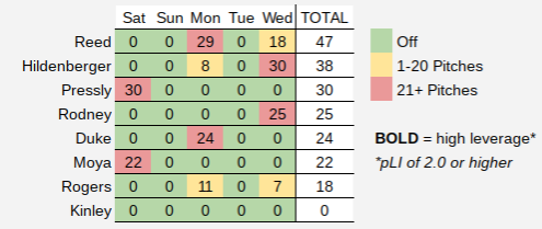Here’s a quick look at the number of pitches thrown by the bullpen over the past five days:
