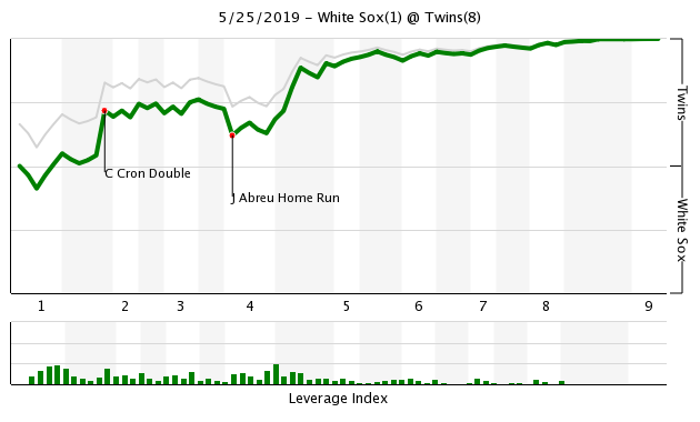 The Twins got on the board early, which seems to be an ongoing theme in 2019. The two runs came in different varieties, however. With two on and two away in the first inning, C.J. Cron lifted an easy fly ball to right field that should have been a routine “can of corn” to end the inning but the baseball god’s had other ideas. The White Sox right fielder seemingly never had a good read on the ball, allowing it to drop in for a two-run double. The old adage, “the ball never lies” once again proved to be true when Cron was later thrown out trying to take third on a passed ball.