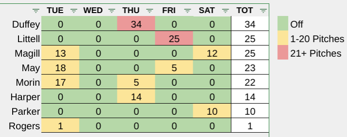 Here’s a quick look at the number of pitches thrown by the bullpen over the past five days: