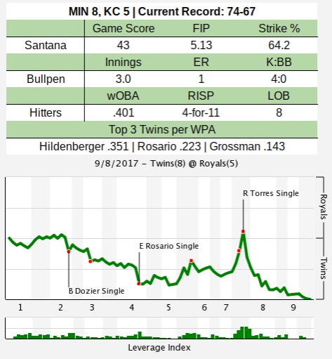The Twins had built an early 5-1 lead but saw that advantage slip. Ervin Santana wasn’t in top form, giving up four runs over five innings, but Hildenberger got this game back on track.