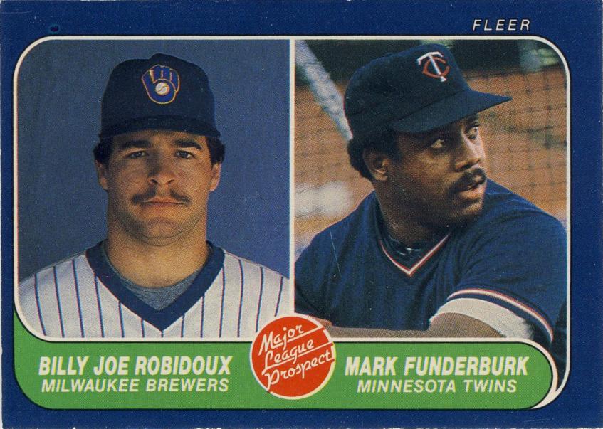 I hate that card. Nothing personal against Funderburk (or Robidoux for that matter; great name). I hated cards that had two guys on two different teams. It made it impossible to sort by team. When you're a kid with baseball cards, you have to sort the cards a different way every day. Or was that just me? Anyway, when it was time to sort by team, these cards would really cheese me off. It was a real dilemma. I'd usually sort by the team I liked better or the player's team that I liked better. It was unsettling.
