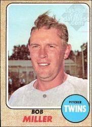 Bob Miller came to the Twins just before the 1968 season. It was not a small deal. The Twins gave up two of their more reliable players – pitcher Jim “Mudcat” Grant and 1965 MVP award winner Zoila “Zorro” Versalles to acquire Miller, fellow reliever Ron Perranoski and aging catcher John Roseboro. Miller did his part to make the trade a success. In 1968 he worked exclusively out of the bullpen, posting a 2.74 ERA. The following year, new manager Billy Martin also had him start eleven games over the second half of the season.