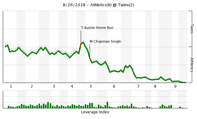 Austin has six homers in just 46 plate appearances so far with Minnesota, and 14 total in 178 PAs on the season. That 7.9 HR% would lead the league if he had enough playing time to qualify (Oakland’s Khris Davis is the top dog at 7.5%).