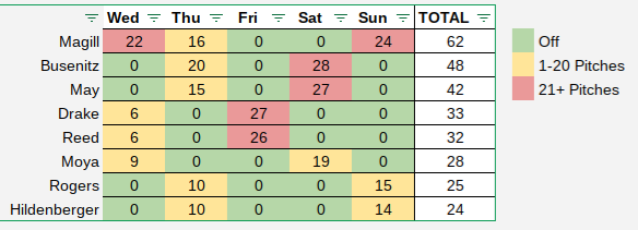 Here’s a quick look at the number of pitches thrown by the bullpen over the past five days: