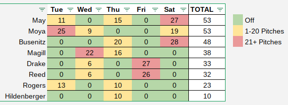 Here’s a quick look at the number of pitches thrown by the bullpen over the past five days: