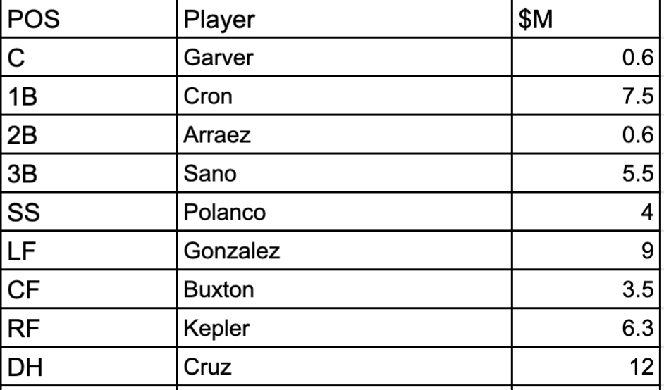 With the lineup, my approach was, "If it ain't broke, don't fix it." The Twins can bring back their record-setting offense in its entirety, and I chose to do so minus Rosario. His spot will be filled by Gonzalez, Cave, and Wade Jr. until someone from the Alex Kirilloff/Trevor Larnach/Brent Rooker group is ready.