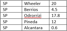 While not exciting new names, both Odorrizi and Pineda are quality pitchers who offer plenty of value. However, with the combination of Wheeler and Jose Berrios in the rotation for years to come and plenty of intriguing high-upside arms in the system, I prefer them on one-year deals even if it means paying a bit more. Thankfully, Odorrizi has already agreed to the qualifying offer of 17.8 million and I sign Pineda for one year at $12 million (with a bit of a reduction coming from his suspension).