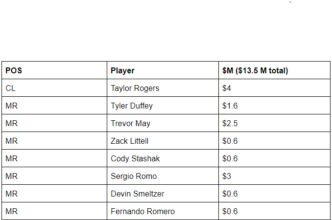 The first addition to the rotation is Wheeler. After spending more money on the lineup than the entire 2019 payroll I had to cut it back for the rotation, but only a little bit. Wheeler has the best upside of any starter not named Cole or Strasburg and if any team is going to unlock it, I would bet on the Twins do it best.