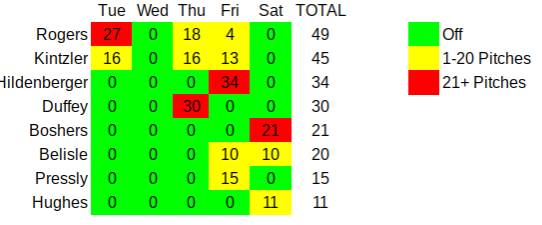 Here’s a quick look at the number of pitches thrown by the bullpen over the past five days: