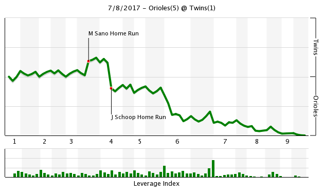 The Twins were 15-5 in games in which Sano homers coming into today and Baltimore starter Wade Miley had really been scuffling, posting a 11.69 ERA in his previous six starts. It felt like only a matter of time before the offense broke through, but it never happened.