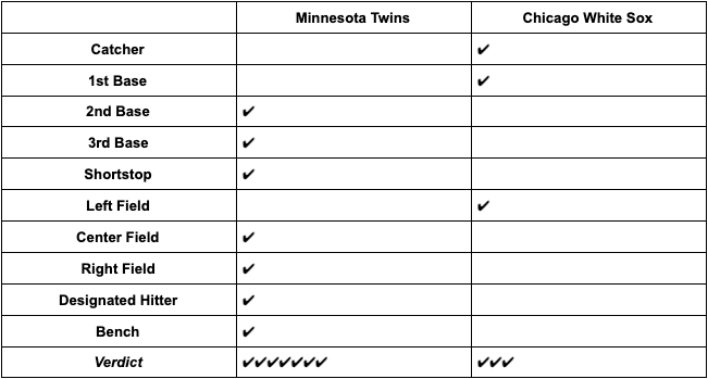 Let’s take a position by position look at both the White Sox and Twins to see who comes out on top.