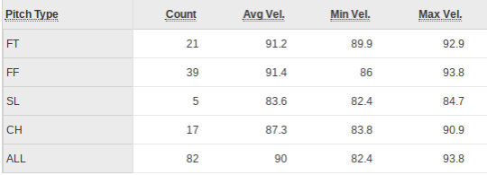 Below is some data on pitch usage and velocity for Slegers, via Baseball Savant (FF stands for four-seam fastball and FT is the two-seamer).