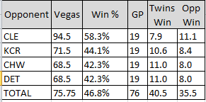 Plus, this exercise assumes the Twins are about a .500 team, because that's what Vegas assumes. If they're better than that, then my numbers would be a few games better.