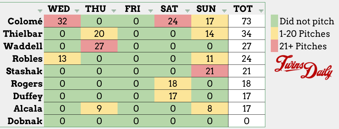 Bullpen Usage Spreadsheet